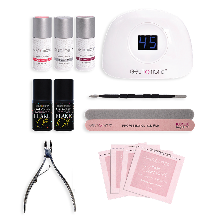 The Deluxe Customer Kit is designed for those who are comfortable in applying GelMoment Gel Nail Polish and are ready to use our Deluxe Four Finger Lamp, which works by automatic sensor!